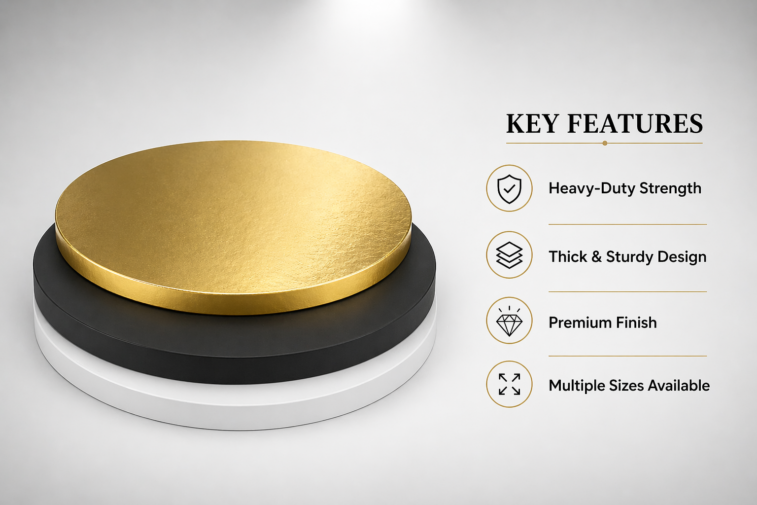 Thick & Durable:Â Made with compressed board for extra strength to support heavy, multi-tiered cakes.